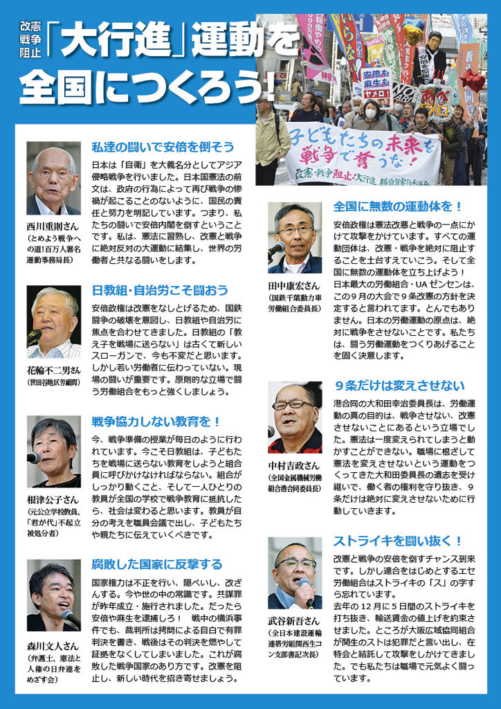 《よびかけ》 改憲・戦争阻止!大行進実行委員会 http://stop-kaiken.blog.jp/