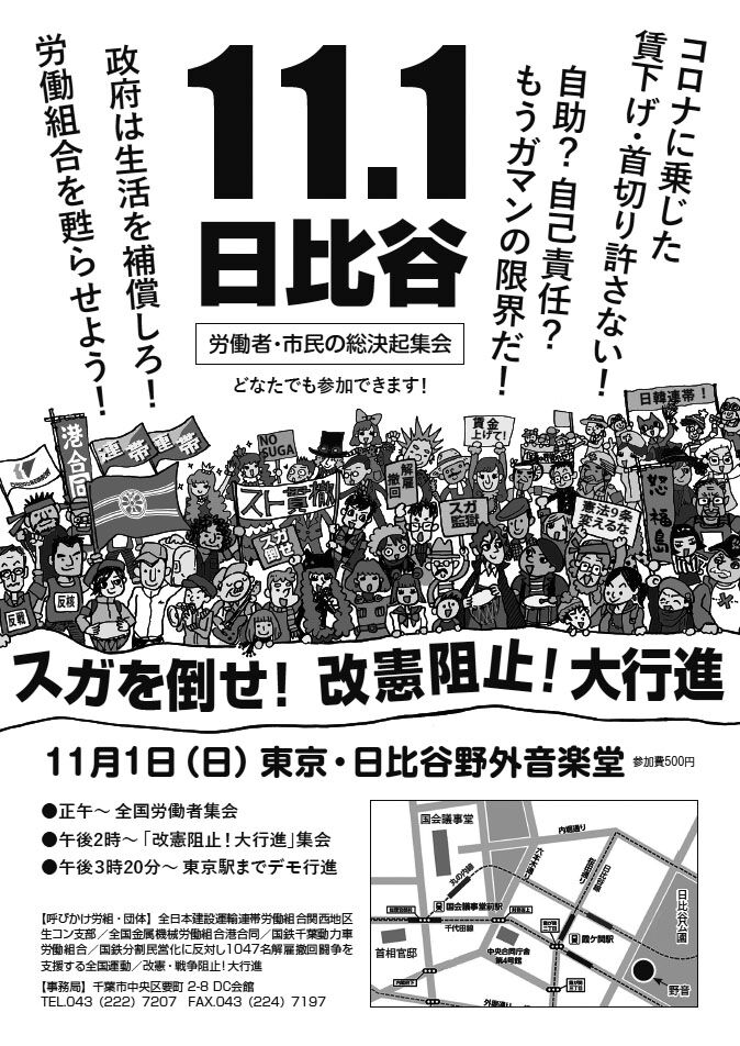 千葉県千葉市中央区要町2-8 動労千葉気付 TEL.0432227207