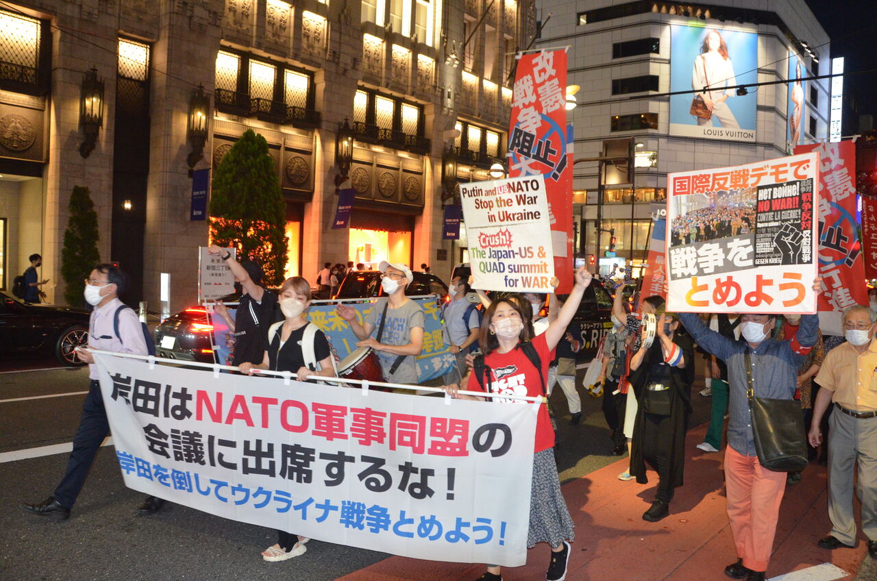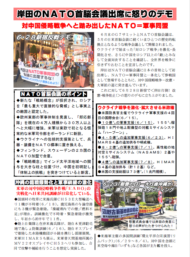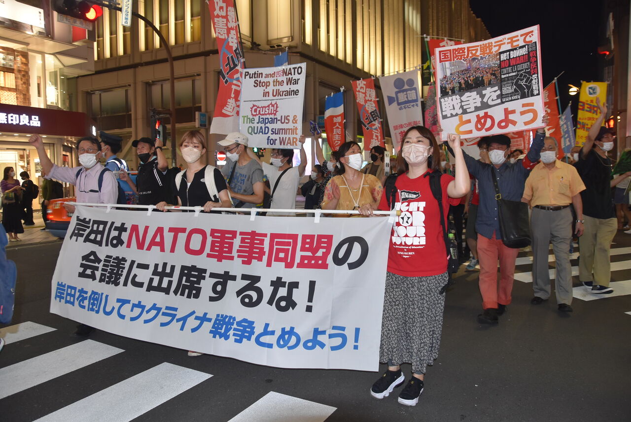岸田は、このNATO=軍事同盟と一体化して参戦国として登場すると同時に、対中国侵略戦争の一角にNATOを位置づけるための主導的役割を果たすために首脳会議に出席したのです。絶対に許すことはできません。
