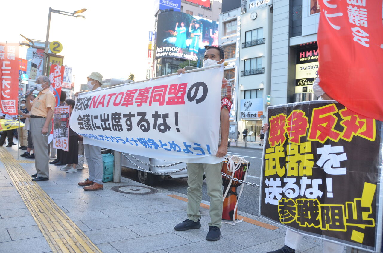 NATOというのは軍事同盟、戦争をともにやろうという集まりです。アメリカがその中心にすわってヨーロッパの国々を結集し、ウクライナ・ゼレンスキーを応援してロシアとの戦いを強めるという戦争会議です。この戦争会議に、NATO加盟国でない日本の岸田が参加する。何のために参加をするのか。自分たちも一緒に戦争をやろう、こういうエールを送るために行こうとしている。我々はこれを絶対に許さない。