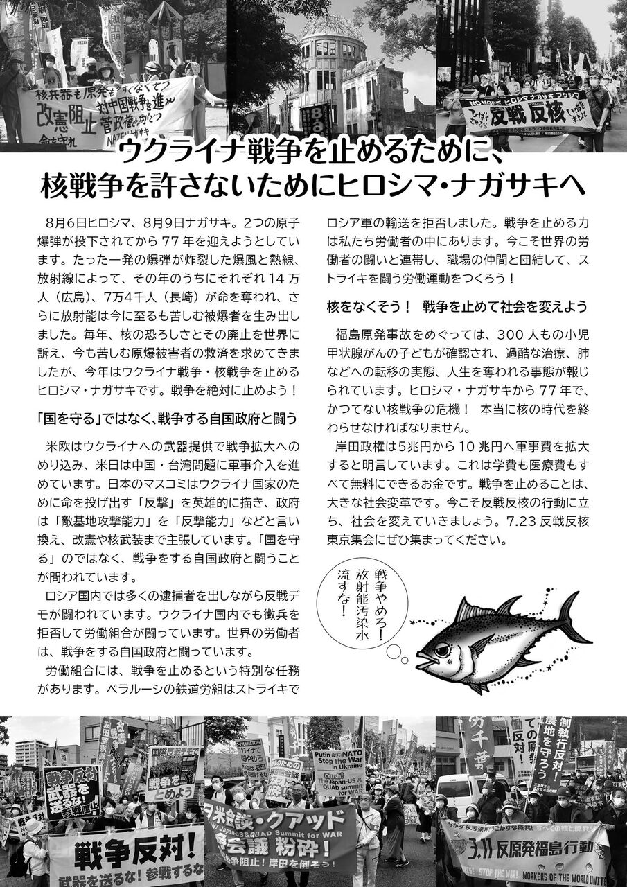 反戦の声をこれまでよりも何倍も何千倍も強くあげよう。一緒に声をあげて、二度とあの戦争を繰り返さない、繰り返させないということを、自身の行動でもって示そうじゃないですか。戦闘的に闘いましょう。