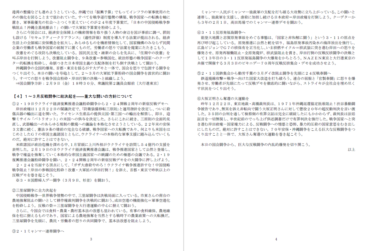 直近の行動方針ビラ