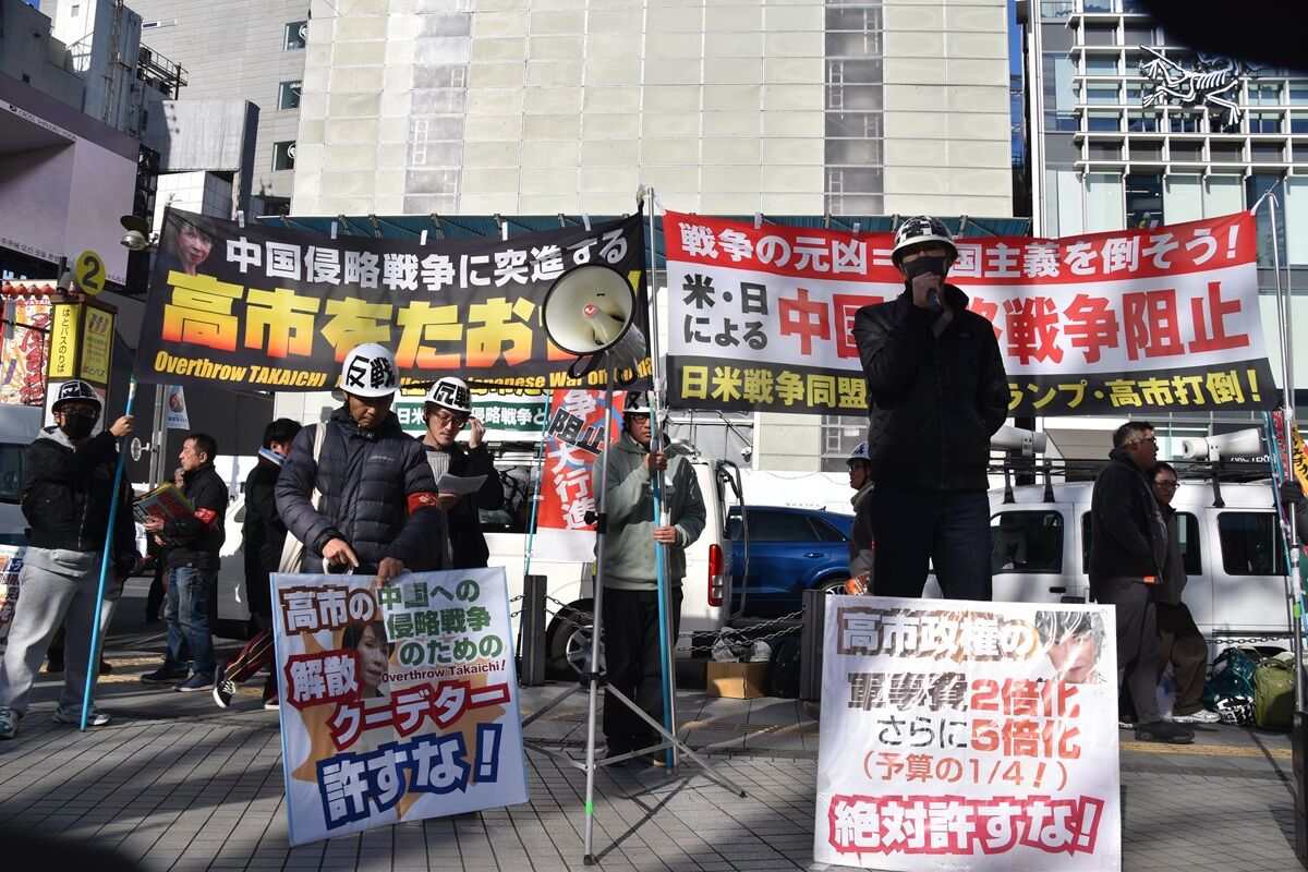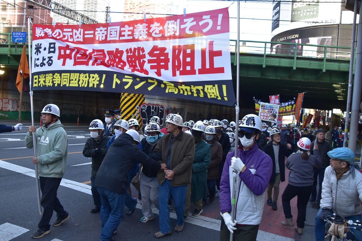 解散総選挙の真っ只中の新宿駅前に370人が結集し、米日の中国侵略戦争阻止、高市打倒の戦闘的反戦デモを打ち抜いた。
