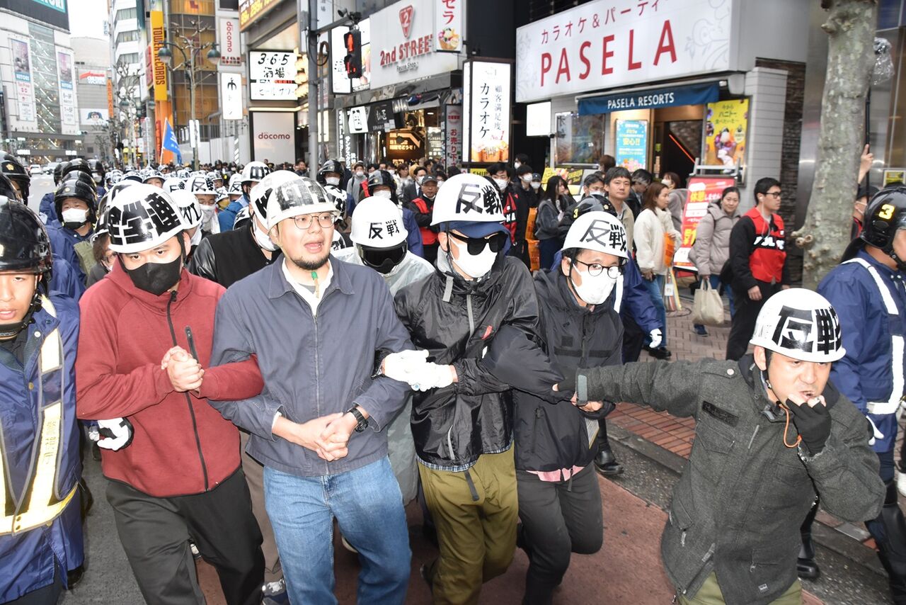 スクラムデモを先頭に渋谷に向けて進撃