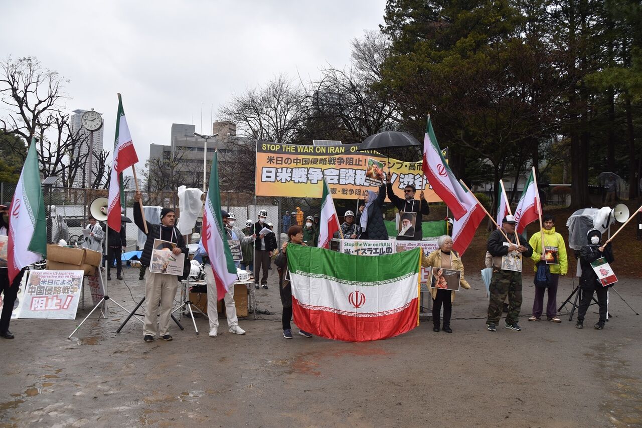 米大使館抗議行動を闘っている在日のイラン人民が戦争絶対反対のアピール
