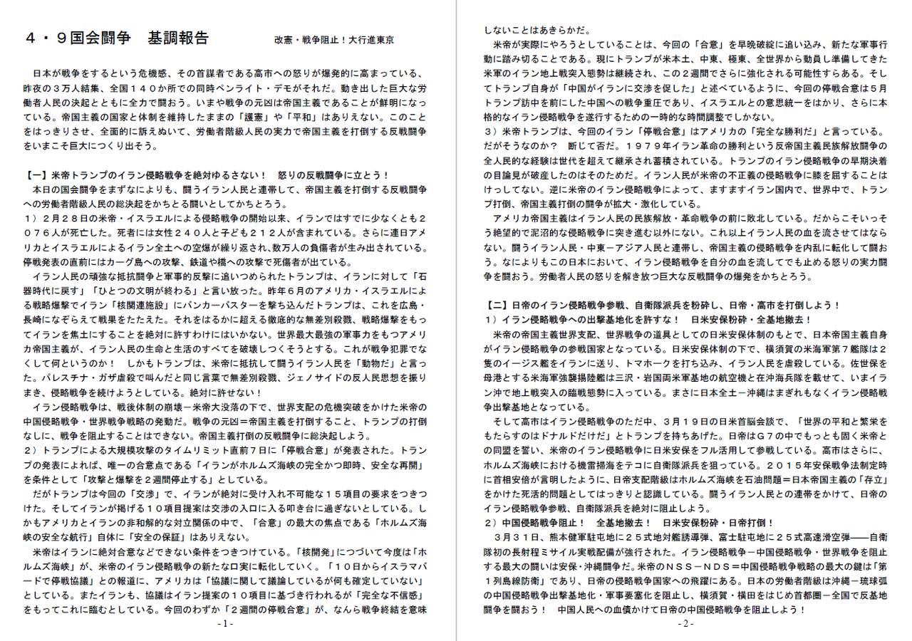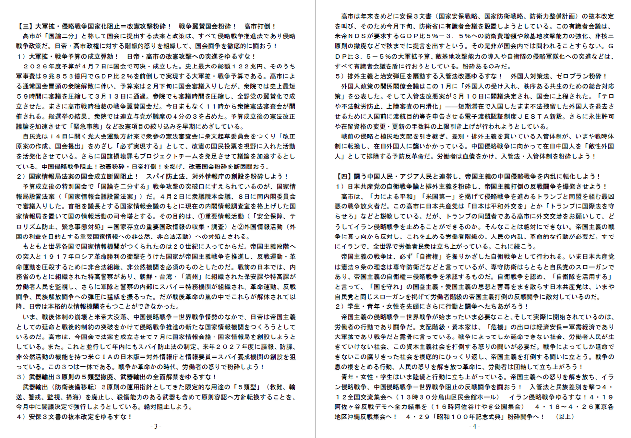 直近の行動方針ビラ